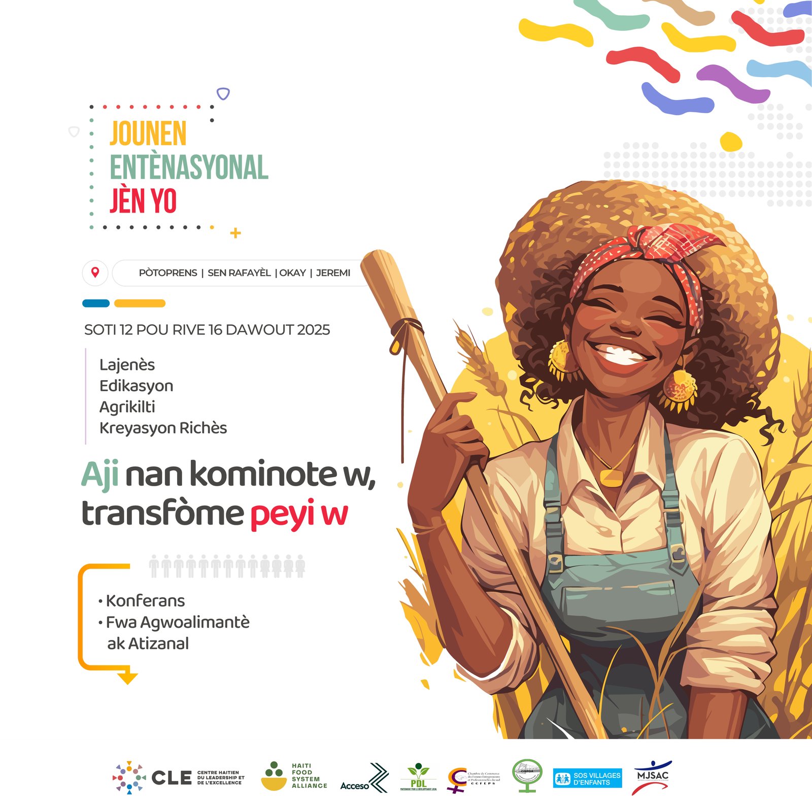 Nous sommes ravis d’annoncer que cette année, la Journée internationale de la jeunesse sera célébrée à Port-au-Prince, aux Cayes, à Jérémie et à Saint-Raphaël, du 12 au 16 août 2025.