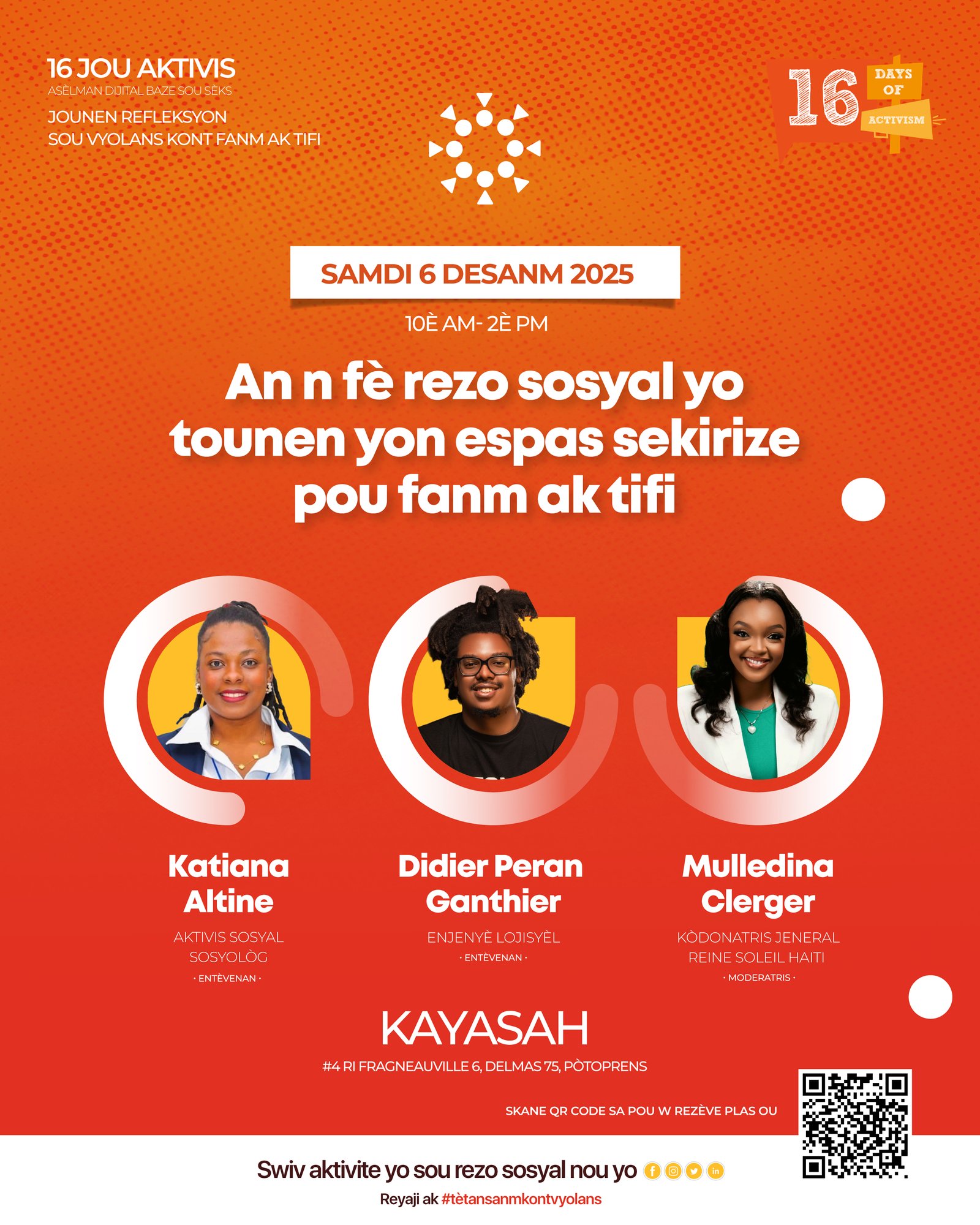 Nan kad kanpay mondyal 16 jou aktivis kont vyolans sou fanm ak tifi, ki pote tèm ane sa a "Tout MOUN ANSANM pou n mete fen nan vyolans nimerik sou fanm ak tifi", Centre Haïtien du Leadership et de l’Excellence (CLE), ap òganize yon evènman espesyal sou fenomèn vyolans nimerik kont fanm ak tifi.