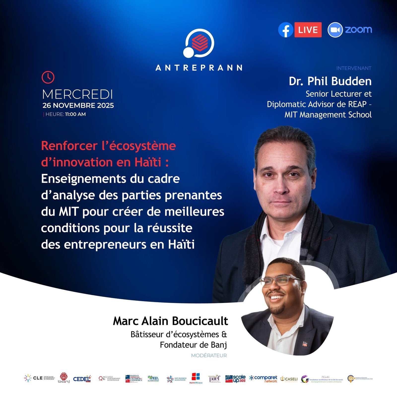 Renforcer les écosystèmes d’innovation pour soutenir l’entrepreneuriat dans des pays comme Haïti », par le Prof. Dr. Phil Budden (MIT)
