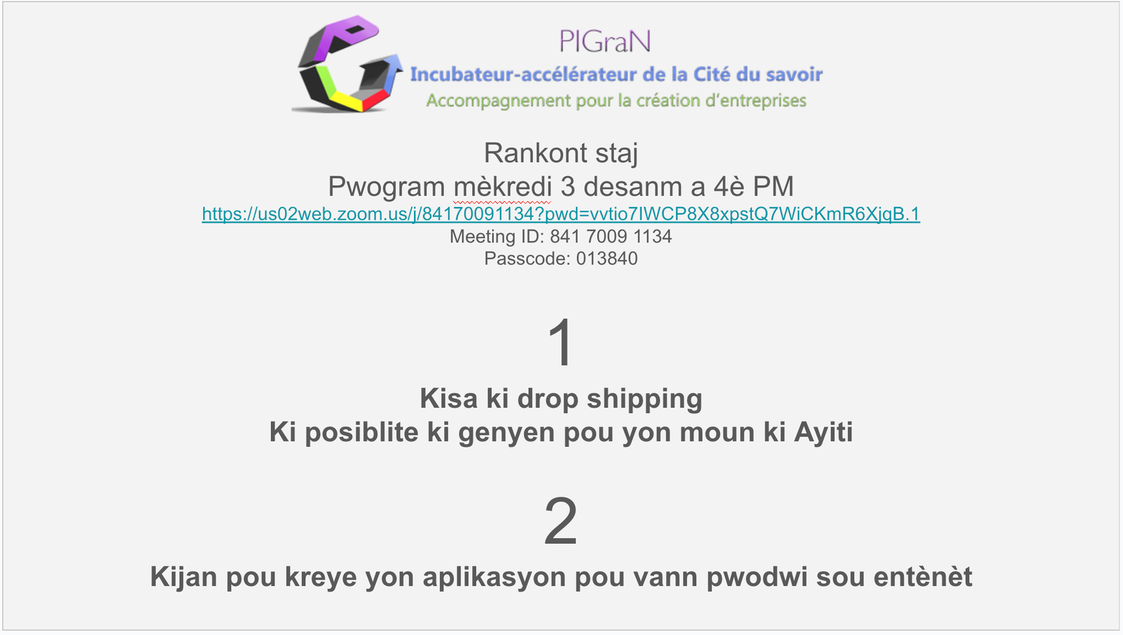 PIGraN Incubateur-Accélérateur / Tables Rondes / Discussions / En ligne